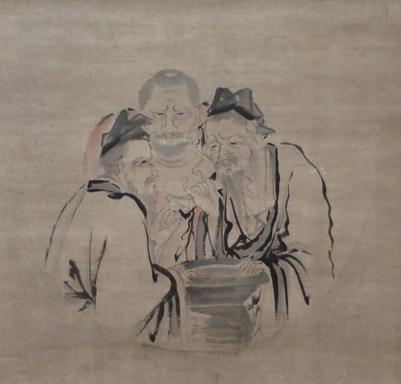 Drie wijsgeren staan rond een azijnvat — en proeven ervan.